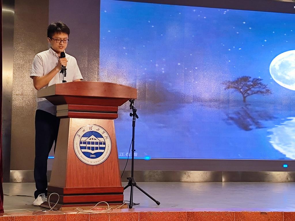 比赛包括自我介绍、经典诵读和即兴演讲三个部分。开云kaiyun体育官方网站首先出场的是陈朝阳老师,朗诵题目为《春江花月夜》,他搭配唯美的月色图,展示了大自然的美景和游子的思乡之情,他在即兴演讲环节论述了对节约的看法,提倡绿色低碳出行。学院第二位出场的是席宇欣老师。席老师身着红裙,朗诵《人生若只如初见》,搭配着优雅的小提琴,展示出初见的欣悦,再见的惘然。最后出场的杜金鹤老师现场朗诵了《致橡树》,把他对教育事业的热爱,对理想的坚定,都揉到诗里揉到每一个字里行间。