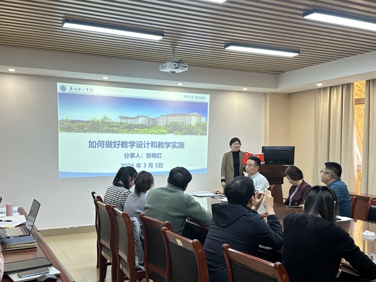 在经验分享环节,教师代表庄蓁蓁针对教学设计分享了个人心得。她通过剖析无效互动案例,提出备课应具备宏观视野,构建完整的知识体系,并密切关注学生的掌握情况与预期目标的契合度。张艳红老师则从教学设计与实施角度出发,建议教师转变理念,从备课转向备学生,深入分析专业人才培养需求,并通过传统文化、时事新闻等多元路径融入课程思政。教师代表宋莹莹以“开好头、备好课、站好岗”为关键词,分享了如何通过精心设计的第一堂课激发学生兴趣,以及如何在课堂上通过走动管理及时掌握学情。