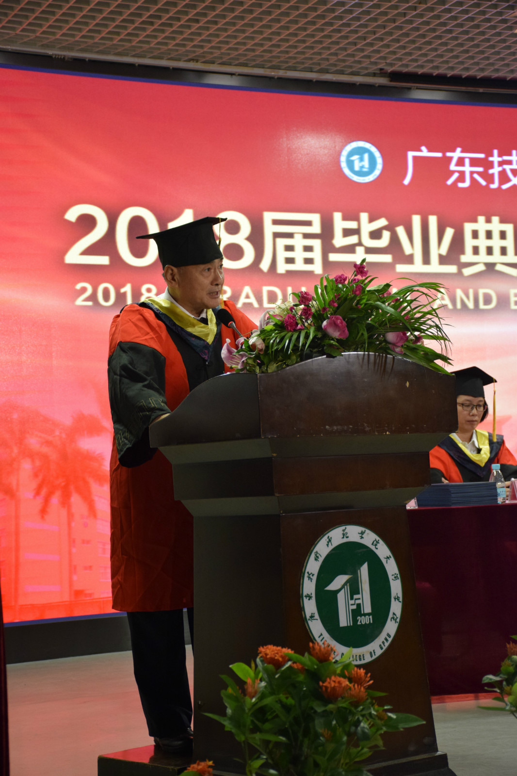 计算机科学与工程学院院长原峰山教授代表学院致辞,他首先代表学院全体老师向圆满完成学业并获得学士学位的毕业生们表示祝贺!他接着回顾了同学们四年的在校生活,说到世界很大,可驰骋的空间大而广阔;个人很渺小,可能就像沧海一粟,但是只要同学们有了积极向上的心态和坚持不懈的努力,就会觉得自己平凡又伟大。他提醒同学们永远不要忘记学习,要把学习当作一生的事情。原院长对毕业生提出了五点希望:一、要有健康的体魄和健全的心灵;二、要学会包容互利、合作共赢;三、保持理性和清醒;四、事业有成也要早日找到人生伴侣;五、希望同学常回母校看看。最后,院长自嘲称也许距离同学们梦想中的大师的要求相差太远,但是一直在努力,一直在朝着更高更好的目标前行。