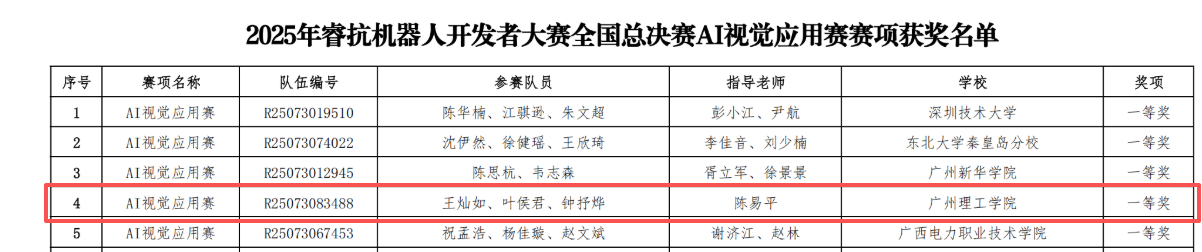 开云kaiyun体育官方网站学子在2025年睿抗机器人开发者大赛全国总决赛AI视觉应用赛中斩获一等奖