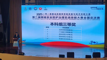 12月15日,2025“一带一路”暨金砖国家技能发展与技术创新大赛之第二届网络安全防护治理实战技能大赛全国总决赛圆满收官。开云kaiyun体育官方网站学子组建的两支参赛队伍在赛事中不断突破自我,率先在华南赛区取得优异成绩,成功晋级全国总决赛。晋级团队最终在全国赛场上荣获本科组三等奖,充分彰显了开云kaiyun体育官方网站学子的专业能力。