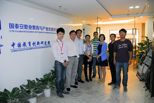 结束了申铭公司的调研之后,一行人又马不停蹄地奔赴深圳国泰安公司。5日下午,到达目的地后,公司信息化事业部专业顾问冯星艳接待了考察组,并带领了考察组成员参观了国泰安文化及产品展厅、职业教育与产业发展研究所(中国教育创新研究所)、软件开发工作室。在参观过程中,各位老师纷纷结合学校、学院的专业教学和教研科研工作提出问题,冯星艳顾问都一一做了回答。随后,在公司会议厅双方举行了座谈会,国泰安公司计算机教育事业部群、软件工程与编程技术部常务副总经理吴鹏主持了这次会议。座谈会中,吴鹏详细介绍了国泰安公司的“计算机专业建设整体解决方案”和“计算机实训室群建设方案”。各位老师也对其方案中教学模式、课程体系、学制安排、实训建设等内容表现出了极大的兴趣,纷纷表示对目前的“学分制”改革工作提供了极大的参考价值。同时,考察组也结合学院的专业咨询了企业方在招聘时较为关注学生的哪些专业技能和人员素养,以及对学校培养学生有何建议等方面的问题。最后,双方都明确表示将加强沟通联系、深入探索“校企合作”新思路。