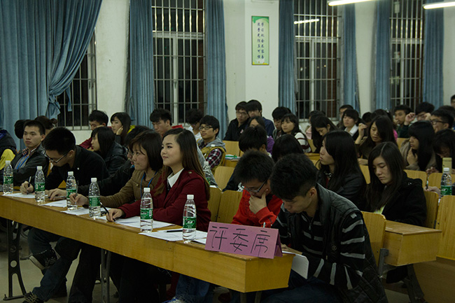 2013年12月4日晚20:30,在7栋318由我系举办的新世纪大学生自我形象设计演讲比赛(决赛)隆重开始了。
