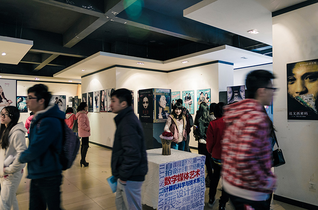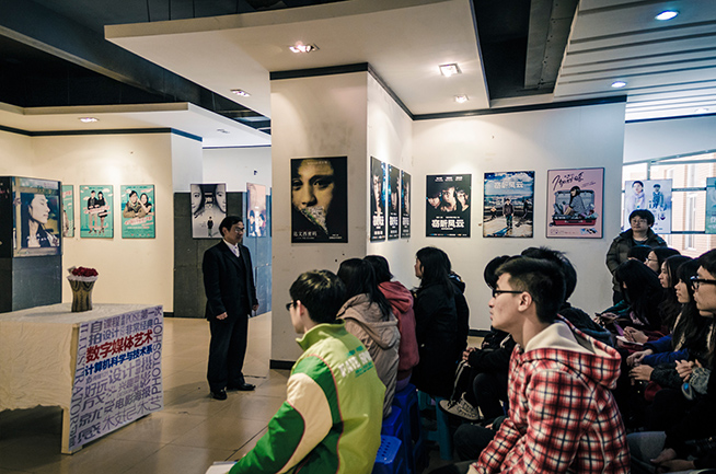 本次主题为“经典电影海报”,参展作品超过100件,均为数字媒体艺术专业12级学生自主完成。指导老师郑哲孚介绍,本次课程设计作品有三大创新点,学生“自己演、自己拍、自己做”,充分激发了学生的学习兴趣与动手积极性。