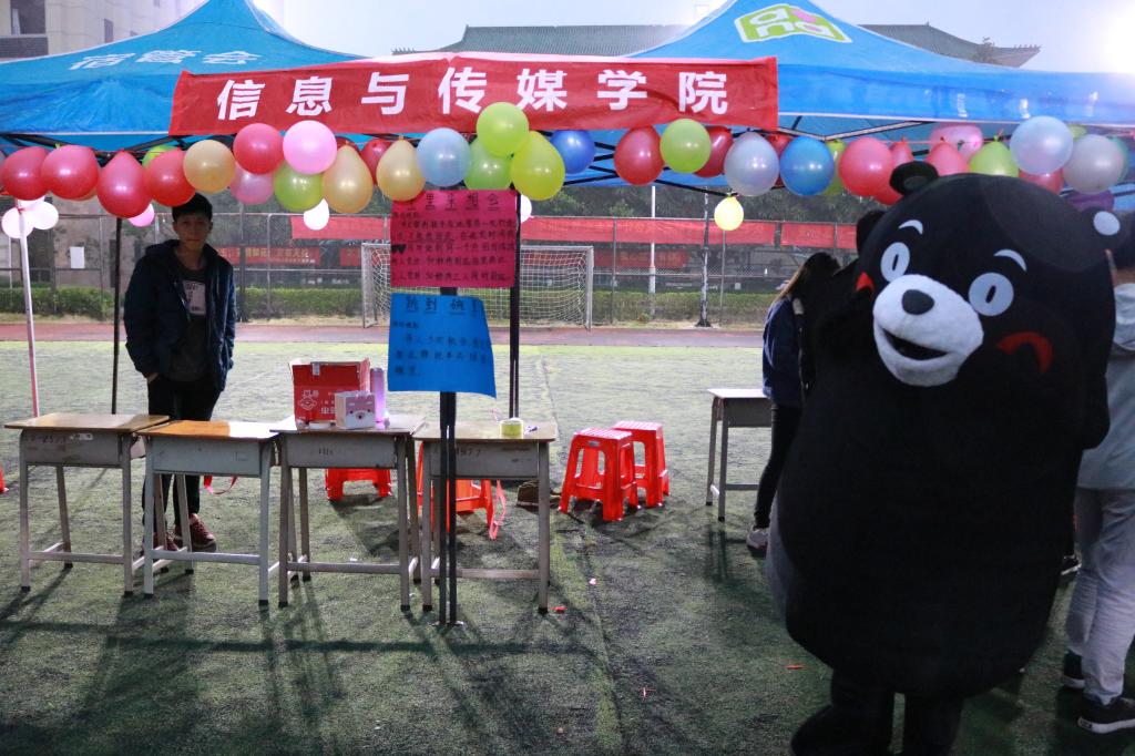 在三月七号这天晚上,院学生会在小足球场和其他各二级学院一同摆摊进行紧张有趣的游戏环节,该环节主要由"跳到碗里来"和"千里来相会"两个游戏,获胜者可以得到对应的奖励。