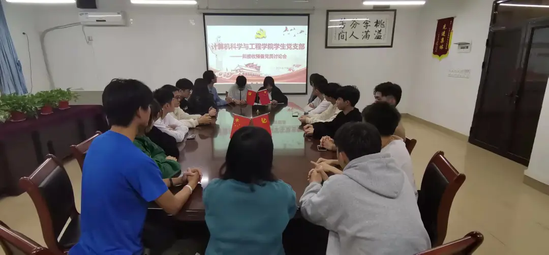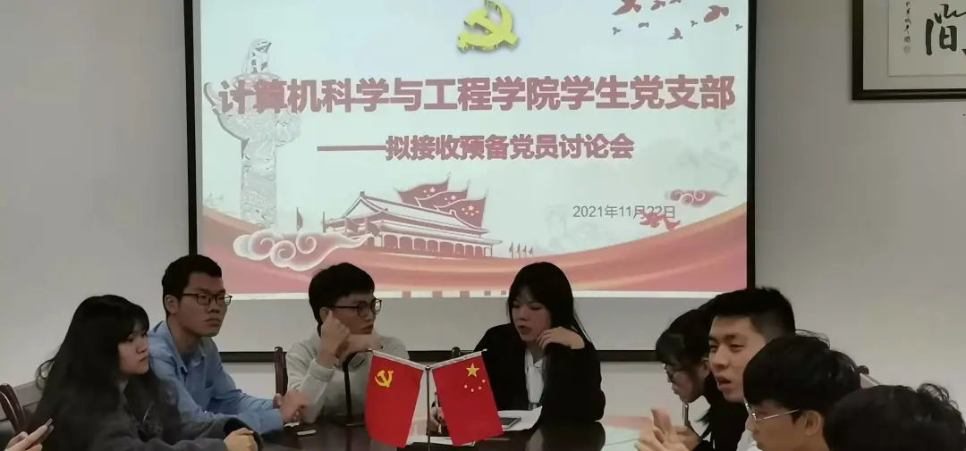 (通讯员:方奕旋)2021年11月22日晚上,为进一步加强党组织建设,夯实学生党支部建设堡垒,落实学生党支部发展预备党员工作计划,为接下来的接收预备党员大会作充分准备,计算机科学与工程学院学生党支部在11栋302召开拟接收预备党员讨论会。参加本次会议人员的有学院学生党支部书记凌诗慧同志以及学生党支部成员。本次会议由凌诗慧书记主持。