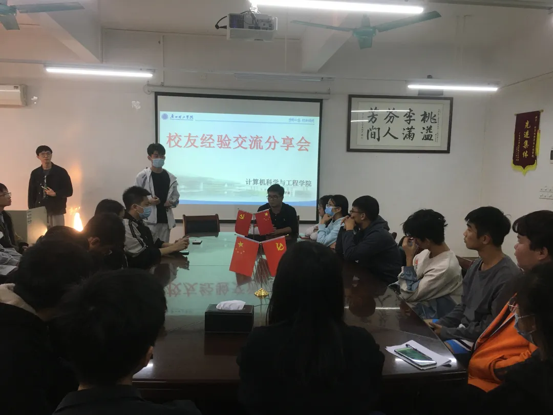 交流会上,谢应德结合自身经验从实际出发,分别从四个方面做了分享:一是给新生的建议。希望大家都尽力以接触各种新事物,积极参与学校组织和社团协会工作、活动等,在尝试的时候也能拓展自己的思维,提升自己的兴趣爱好和发现自己擅长的方向,规划好自己的职业生涯。二是关于专业学习。他强调,技术行业从业者思维活跃度尤为重要。在确定好自身的方向时,不仅要充分学习相关的理论知识,更要动手去实践理论,从实践中去发现自身的问题,并解决这些问题,这是提升自己关键的一步。三是重视实践。希望同学们不要局限于课堂上老师的教学,更要重视课后技术的挖掘和学习。任何一个专业的学习都离不开自身的努力和亲身的实践,纸上谈兵是万万不可的,真正的提升永远都在真理的实践中。