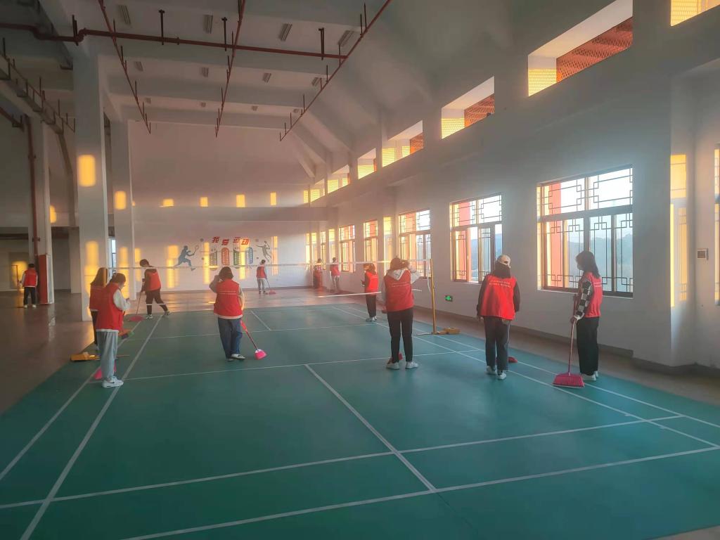 活动开始,志愿者们拿起扫除工具,大家纷纷行动,热情高涨,对教职工之家进行全面打扫。志愿者们分工明确,协同合作,不怕脏、不怕累,积极投身于劳动中。擦窗户、擦桌子,扫地、拖地,帮老师整理办公室,摆放桌椅,打扫羽毛球场、舞蹈室、乒乓球台以及清洁厕所等,对隐藏在死角的垃圾彻底清理,确保不留一丝脏物。经过大家的清理与打扫,整个教职工之家焕然一新。