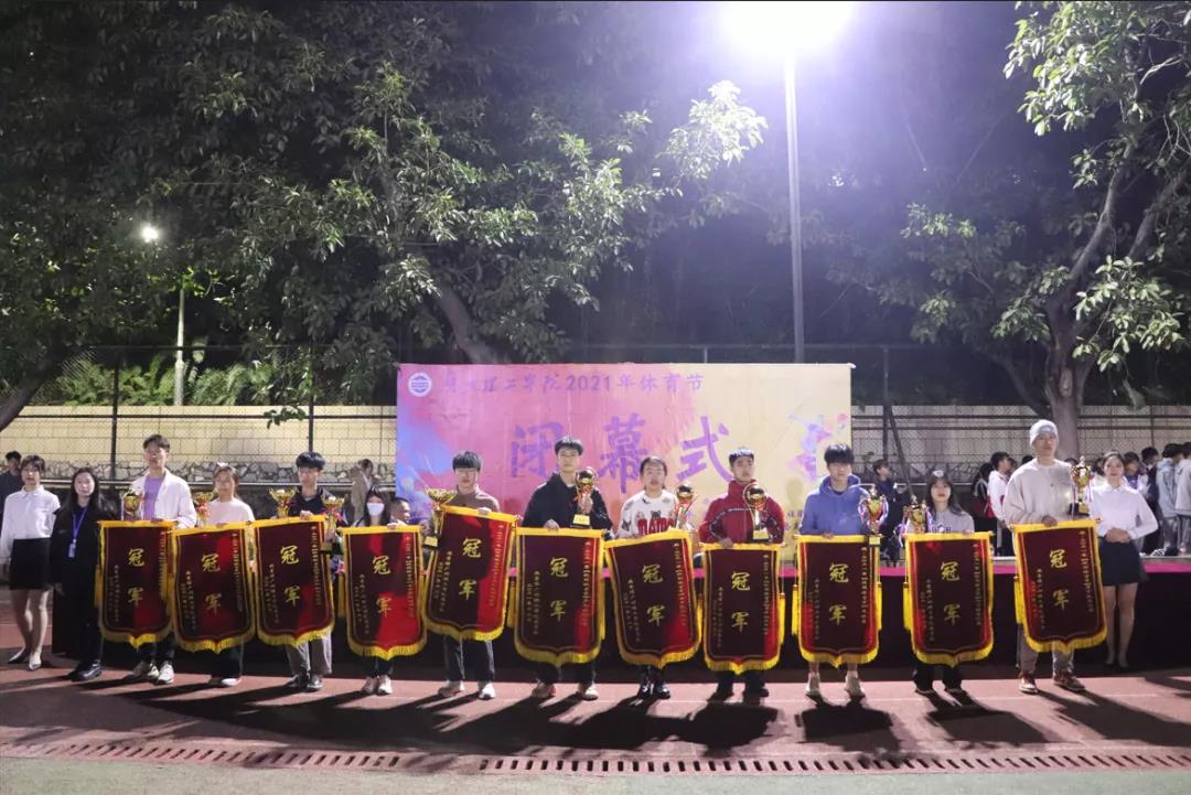 在最后,广州理工学院校团委书记彭文刚对本次闭幕式做了总结,他深刻指出一组组数据背后是球员每天的艰苦训练以及比赛时的临场应变能力,俗话说得好“养兵千日,用兵一时。”金色的奖杯,鲜红的锦旗都是最好的证明,颁奖台上的他们,是球场上的明星,更是学院的明星,同学们的掌声是送给他们最好的礼物。