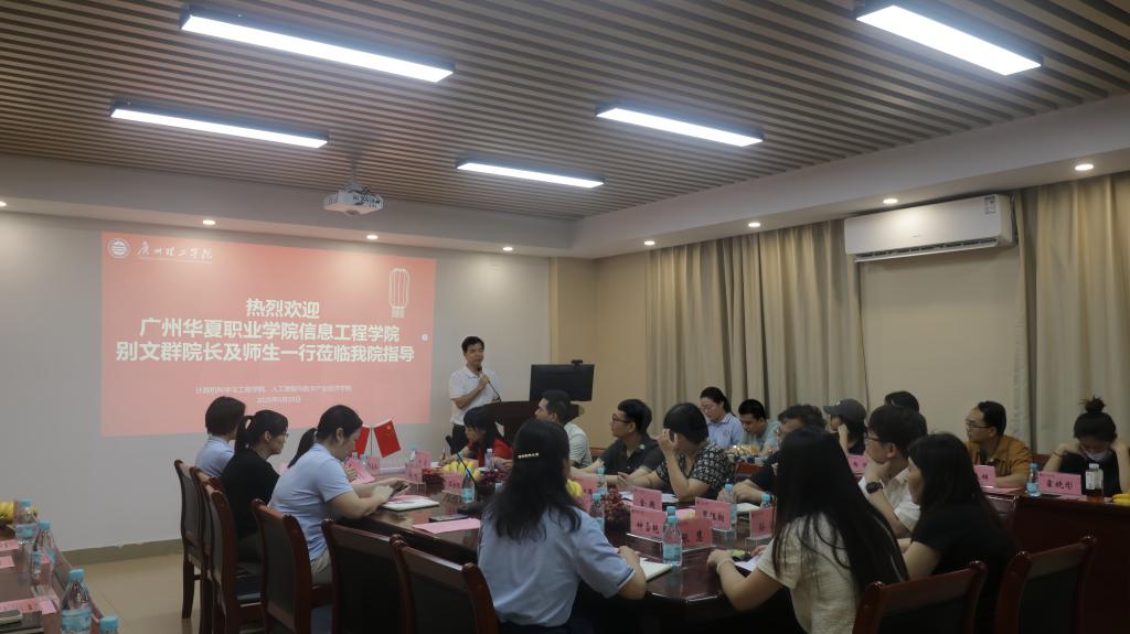 实地参观后,双方在信息楼303会议室展开专题座谈。我校计算机科学与工程学院院长贺敏伟、党总支书记蔡岳良、副院长王金恒等专业教师团队与华夏学院一行面对面交流,会议由学院办公室主任叶智颖主持。