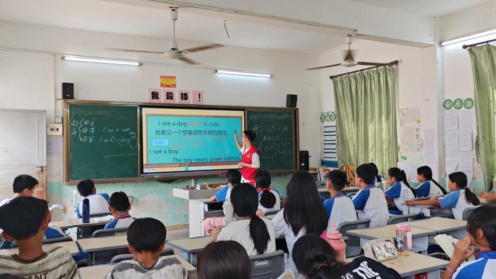 在中心小学,支教队员通过创新教学方式提升课堂吸引力。英语课上,队员蔡逸铭以情景对话引导学生掌握定语从句的运用,学生们在互动中逐渐克服对复杂语法的畏难情绪。数学课上,队员周伟驰借助实物模型和动态课件,将抽象的几何图形具象化,帮助学生建立空间思维。队员郑芝琪组织的旗语训练课上,孩子们挥舞彩旗的身影构成了一道亮丽的风景线。队员梁炜婧的生理知识普及课帮助孩子们了解身体发育的基本常识,学会如何更好地保护自己。
