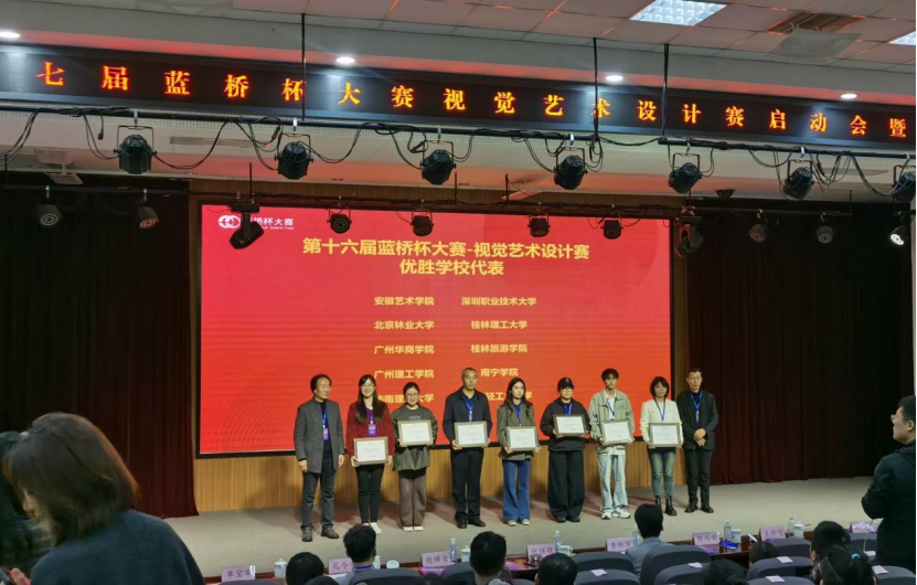 主论坛上,思想碰撞尤为热烈。青岛农业大学校领导与蓝桥杯大赛组委会执行秘书长李艳萍的致辞,既肯定了过往赛事成果,也勾勒出设计教育与行业接轨的发展蓝图。鲁迅美术学院王亦飞教授以《艺术创新力——与无形的力量互动》为题,用鲜活案例阐释创新思维的培养路径;北京印刷学院严晨教授提出的“大学生数字艺术创作‘五要素’指导法”,为破解教学痛点提供了可落地的解决方案。值得一提的是,在同期举行的第十六届大赛表彰环节,广州理工学院凭借出色的赛事组织与亮眼的学生成绩,一举斩获“优秀组织单位”“优胜学校”两项荣誉,陈丽思老师代表学校登台领奖,这份认可也成为该校深耕实践教学的有力见证。