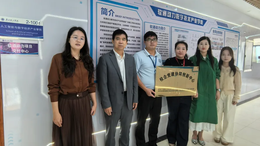 为多渠道促进学院党建工作成效,用党的创新理论铸魂育人,探索“党建+产教融合”的新模式,11月6日,计算机科学与工程学院教工党支部与中共深圳软通动力信息技术有限公司运营服务支部携手共建的“校企党建协同创新中心”在人工智能与数字经济产业学院软通动力数字技术产业学院交付中心正式挂牌。 软通动力运营服务支部书记刘静、计算机科学与工程学院院长贺敏伟、党总支书记蔡岳良及双方项目成员共同出席了仪式,见证了这一深化校企协同育人的重要时刻。