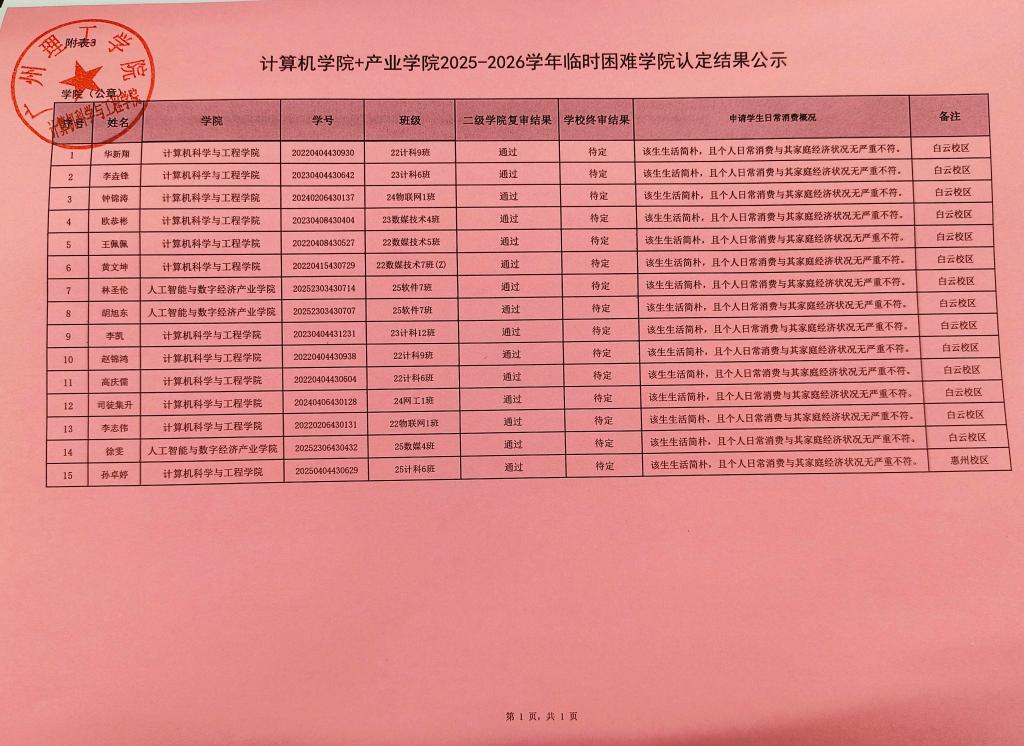 根据《广州理工学院学生资助中心关于做好 2025-2026学年秋季学期临时困难补助工作的通知》(广州理工〔2022〕53号)等文件精神,开云kaiyun体育官方网站积极开展临时困难补助认定工作。经过学生本人自愿提出申请、二级学院核定工作小组审核等程序,现将2025-2026学年秋季学期临时困难补助院级认定结果予以公示。