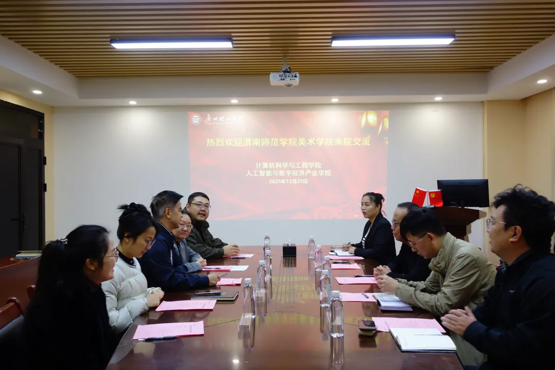 12月23日上午,渭南师范学院美术学院副院长刘涌涛率队,携专业负责人及青年教师代表一行莅临我校交流。学院院长贺敏伟,数字媒体技术系主任汤婵及相关专业教师热情接待并参与座谈。