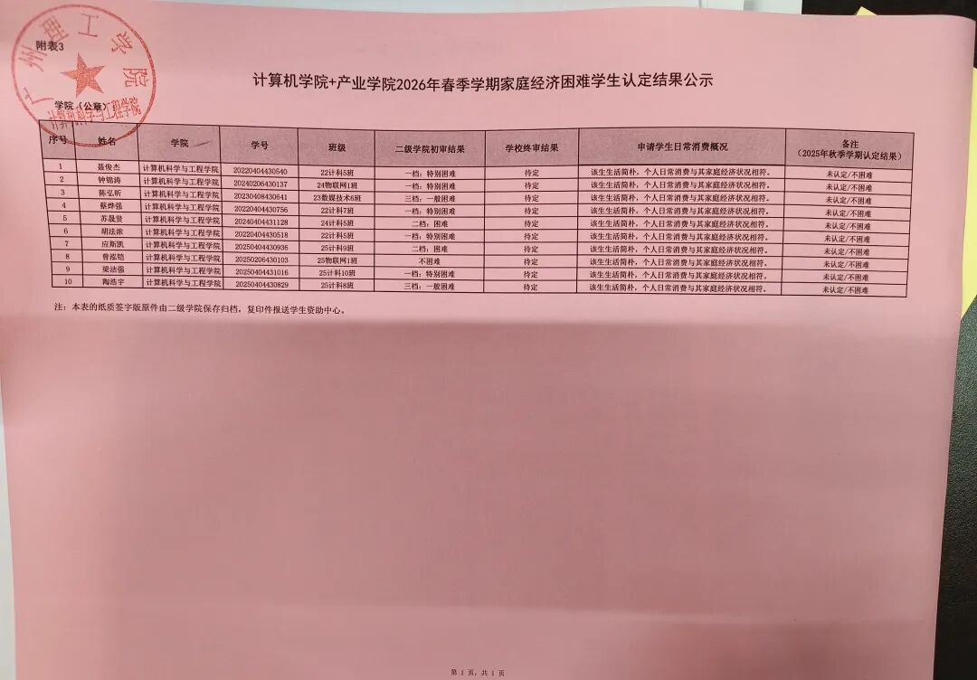 根据《家庭经济困难学生认定工作实施办法》(广州理工学助函〔2026〕5号)等文件精神,开云kaiyun体育官方网站积极开展家庭经济困难学生的认定工作。经过学生本人自愿提出申请、班级评议小组评议、二级学院核定工作小组初审等程序,现将2026年春季学期家庭经济困难学生增补认定工作的院级初审结果予以公示。