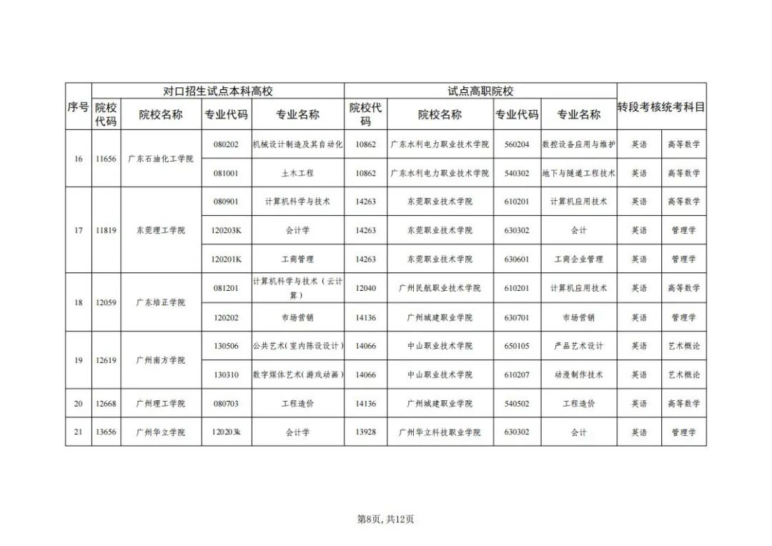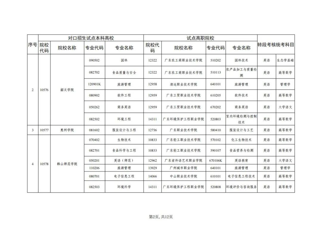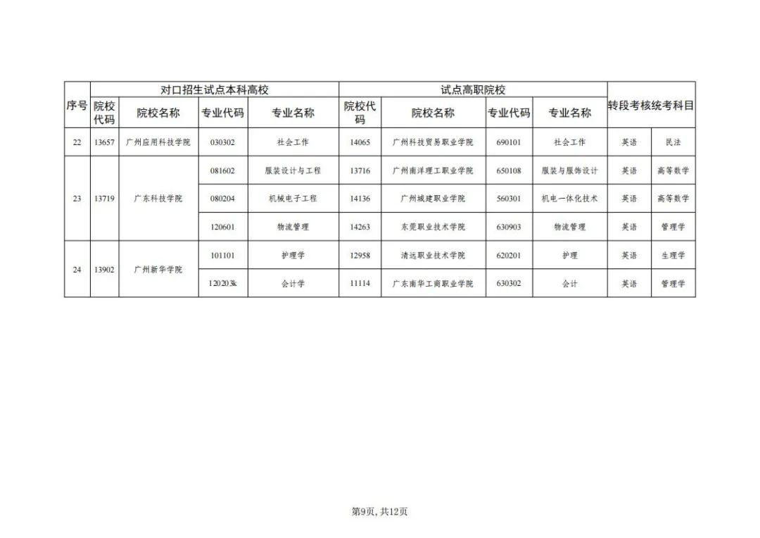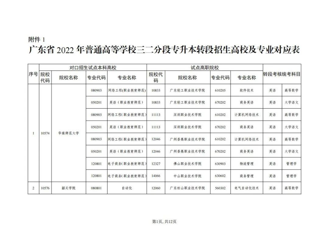 1.广东省2022年普通高等学校三二分段专升本转段招生高校及专业对应表
