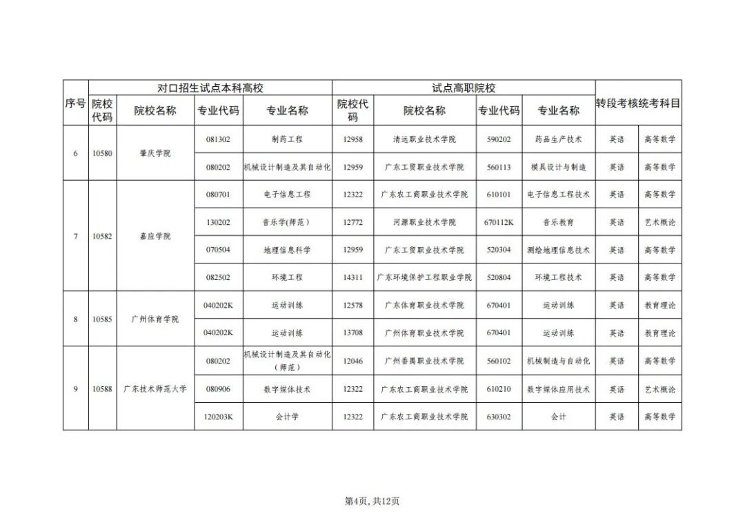 四、招生院校及专业计划省教育厅将视对口试点高职院校相应专业招生规模、教育教学质量、学生报考意愿情况、试点工作开展情况最终确定试点本科高校的对口专业招生计划。普通高等学校转段招生的招生计划在教育部下达的年度本科招生计划外单列安排,招生数纳入本科高校生均办学条件计算范围。