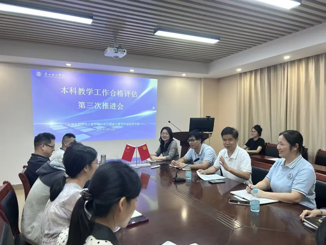 (通讯员:潘予洋)5月12日下午,本科教学工作合格评估第三次推进会在4 - 303教室举行。计算机科学与工程学院和人工智能与数字经济产业学院齐聚于此,共同聚焦本科教学评估关键任务,为即将到来的6月初预评估全力冲刺,为学院的长远发展筑牢根基。两院领导、评估专员、各系主任以及实验室负责人等成员出席会议,共同谋划评估冲刺阶段的各项工作安排。